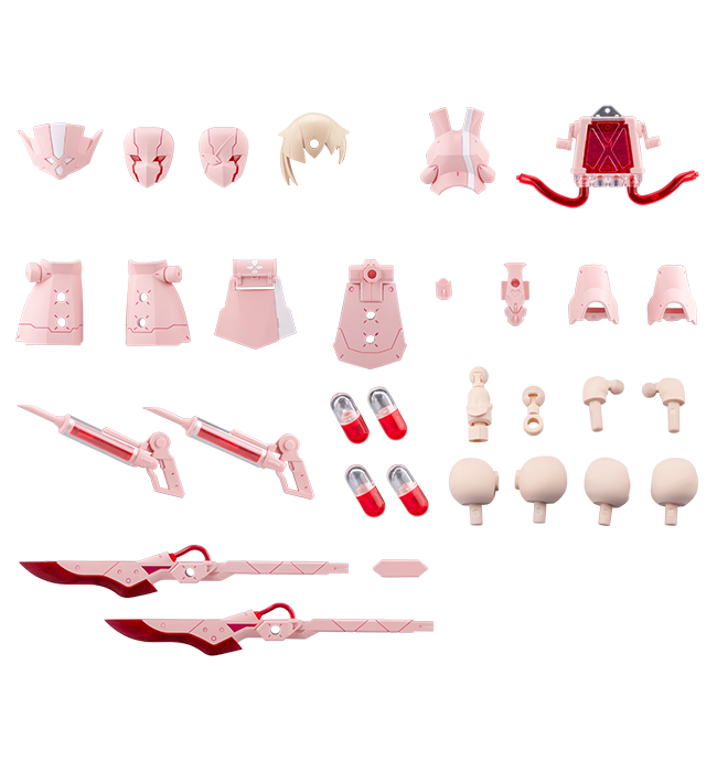 本製品は「メタモルフォーゼユニット エクスアーマー ホワイトナース」の成型色を変更し、「拡張スキンパーツ」「3mm穴つきヘッドギア」を追加したバリエーションキットです。